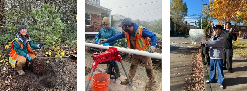 We are a collaborative team of professionals and community partners working together to increase access to green jobs and to foster healthy communities. As a team, we are both a well-trained partnership of tradespeople and a collective of mentors and teachers. Through hands-on training with a focus on rain garden and cistern design/build, operations and maintenance, vegetation management, and ecological restoration, we aim to pass our strategies onto others in a growing field of ecologically-focused careers.
