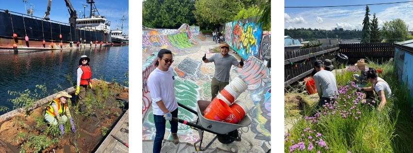 In Spring 2025, our most recent cohort of adult trainees successfully completed the Dirt Corps Spring 2025 RainWise Training Program and Western Washington Regional GSI Curriculum. Over seven weeks, they accumulated a breadth of technical knowledge, field experience, and best-practice expertise in topics including green infrastructure, urban forestry, riparian restoration, native plant identification, wetland ecology, revegetation principles, noxious weed management, grattix box installation, cistern design, small business development, and strategies for stewarding our neighborhood open spaces.